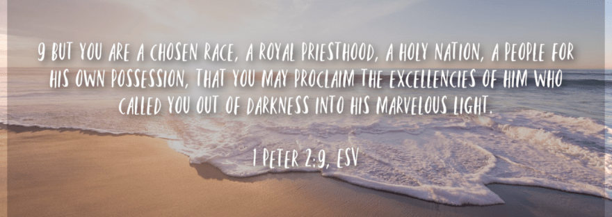 “But you are a chosen race, a royal priesthood, a holy nation, God’s special possession, that you may declare the praises of Him who called you out of darkness and into his wonderful light.”